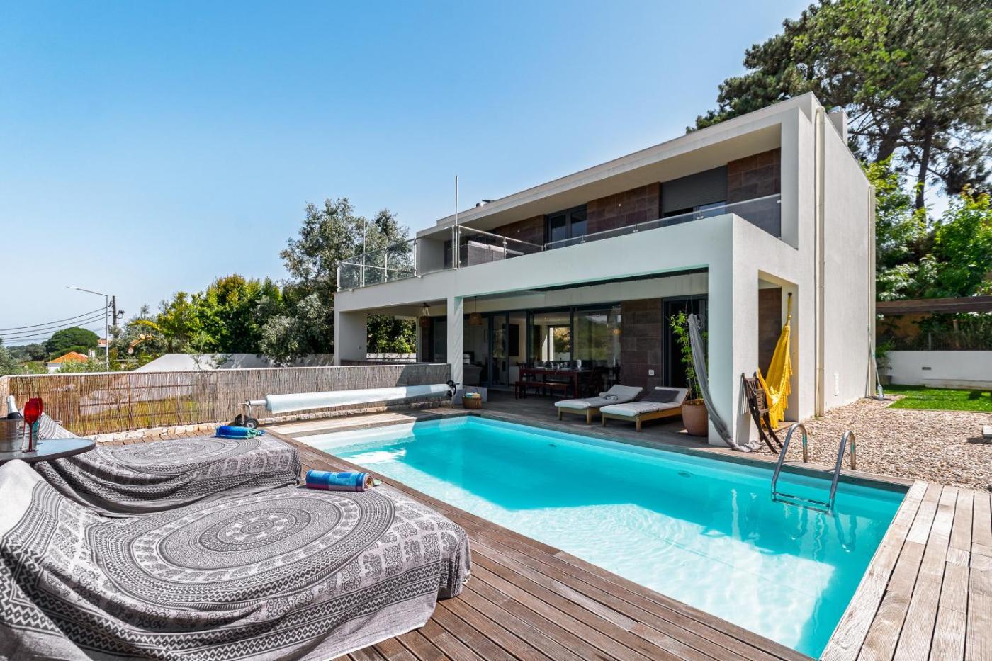 Apresentando vista do jardim, Casa Praia do Meco fornece acomodações com uma piscina exterior e varanda, a cerca de 2,2 km de Praia do Meco. O alojamento apresenta uma piscina privada, jardim e estacionamento privado gratuito.